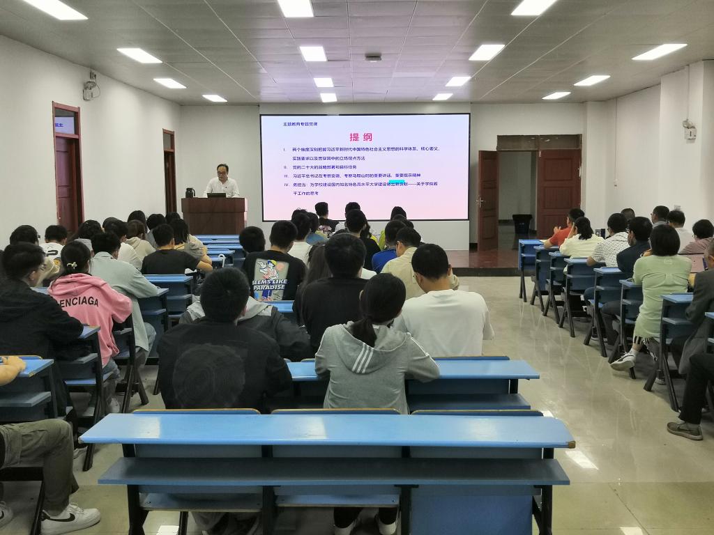 5月26日下午,BG大游平台举行学习贯彻习近平新时代中国特色社会主义思想主题教育专题报告会。公司党委书记单桂锋以《学理论、悟新思、强作风 为公司建设国内知名特色高水平大学建设做出新贡献》为题讲授党课。校团委程建轩老师列席党课报告,院领导班子、党委委员、纪委委员、支部书记、团委书记、支部委员、教工党员和员工党员代表参加。