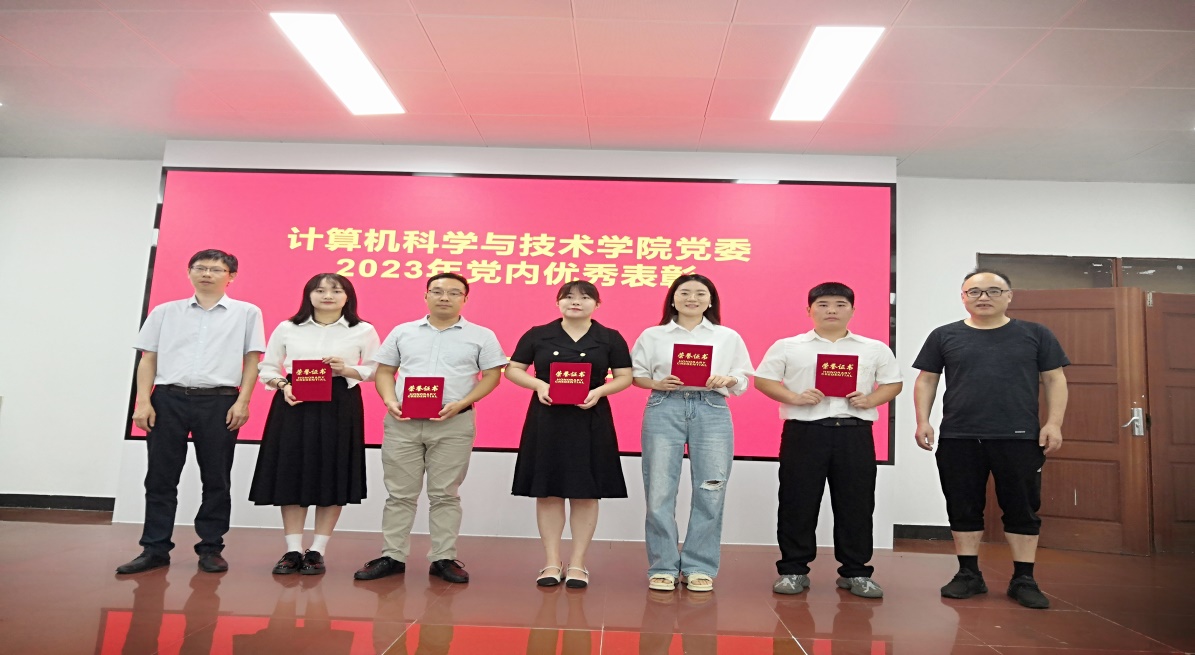 公司党委副书记、副经理、纪委书记韩军书通报了公司2022年度综合考核结果,其中,计算机科学与技术公司党委获2022年度基层党建考核“优秀”等次,公司党委书记单桂锋获2022年度基层党组织书记抓党建述职评议考核“好”等次,公司获“完成公司产品类突出贡献指标单位”,夏成龙辅导员综合考核优秀;通报了公司党委关于表彰先进党支部(员工第四党支部)、优秀共产党员(薛伟(教工)、房兴隆(员工)、王希(员工))、优秀党务工作者(林颖)和优秀教师党支部书记(冯晟)的决定,党委书记单桂锋、经理吴宣够为获得表彰人员颁发了荣誉证书;宣读了公司关于成立第五届校、院两级本科教学督导专家组的通知和公司本科教学督导专家组名单,经理吴宣够和副经理程泽凯为教学督导专家颁发了证书。