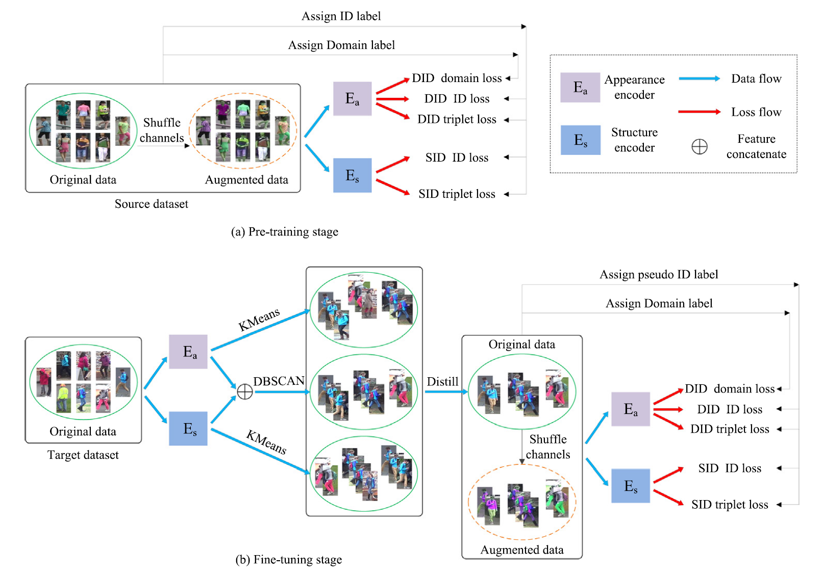 行人重识别任务旨在解决跨视角条件下行人图像检索问题,是计算机视觉和生物特征识别领域的一个重要研究方向。由于不同域之间差异的存在,已有行人重识别研究在实际应用中存在跨域性能良的问题。团队在分析现有无监督行人重识别方法的基础上,提出一种利用色彩空间特性来丰富数据多样性的方法,进而借助增广数据之间的语义关联性和多重聚类算法来提升伪标签的置信度。相关研究成果发表在人工智能、计算机视觉领域一区TOP期刊《Pattern Recognition》(IF: 8.0)。公司为论文第一完成单位,BG大游平台陈峰博士为第一作者。