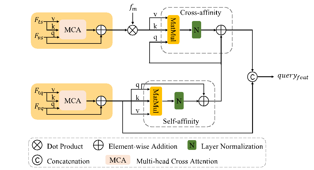 当前深度学习参考视频目标分割(RVOS,Referring Video Object Segmentation)已有工作都要求特定场景具有足够丰富的文本及视频多模态联合标注数据。但在缺乏标注数据的新应用场景,以较低成本实现多样化视频有效目标分割是一个迫切需要解决的问题。团队基于Transformer架构,提出了一种跨模态少样本亲和力学习的新方法,根据少量样本建立多模态亲和关系,为多样化的数据学习新的语义信息;首次构建了的FS-RVOS(Few-shot RVOS)基准,在只有少量标注样本的情况下,采用交叉注意力方式分层融合视觉和文本特征以获得特定类别的鲁棒特征表示,为最终实现真实陌生场景参考视频目标分割指明了方向。