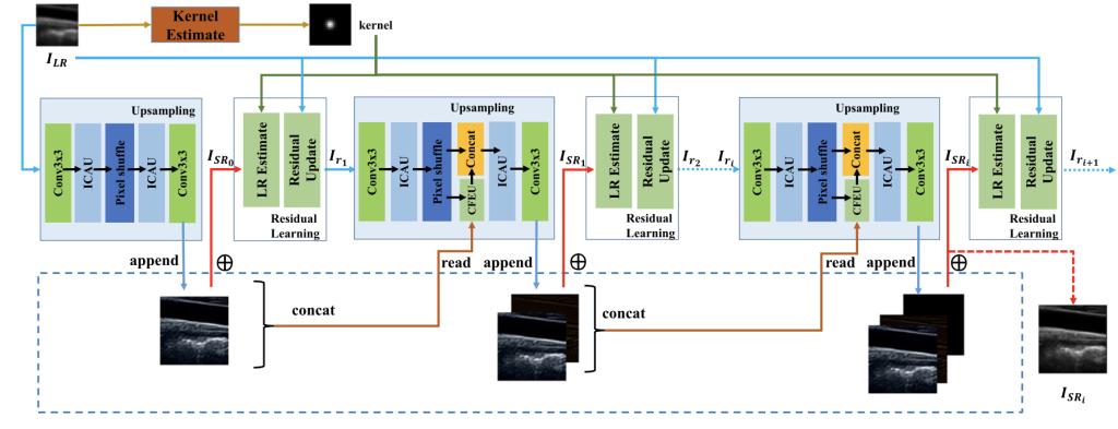 对于超声临床诊断而言,超声影像超分辨(ultrasound image super-resolution)可以提高超声成像质量,从而提高疾病诊断的准确性。但由于传感设备和传输介质的差异,实际场景中超声成像其退化模糊过程是未知且不可控的。为了解决未知退化场景超声医学影像准确超分辨的难题,团队提出了一种有效的基于退化模糊自估计且结合渐进残差学习和记忆提升机制的超声影像盲超分方法,初步实现了真实场景超声影像准确超分辨。相关研究成果发表在人工智能、计算机医学信息交叉领域一区TOP期刊《IEEE Journal of Biomedical and Health Informatics》(IF: 7.7)。公司为论文第一完成单位,BG大游平台刘恒教授、硕士生刘建勇分别为论文第一、第二作者。