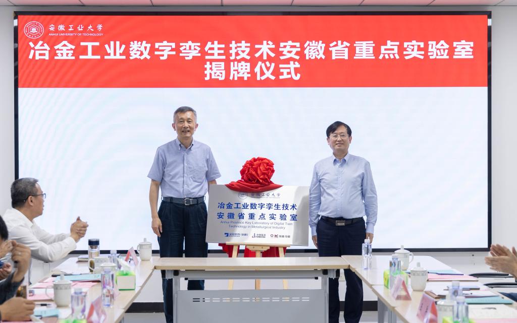期间,魏先文为冶金工业数字孪生技术安徽省重点实验室学术委员会委员颁发了聘书,并与罗军舟共同为实验室揭牌。