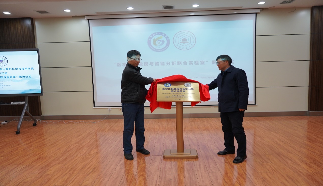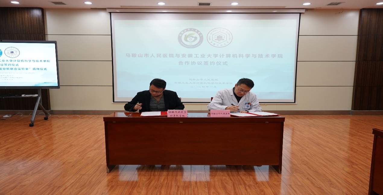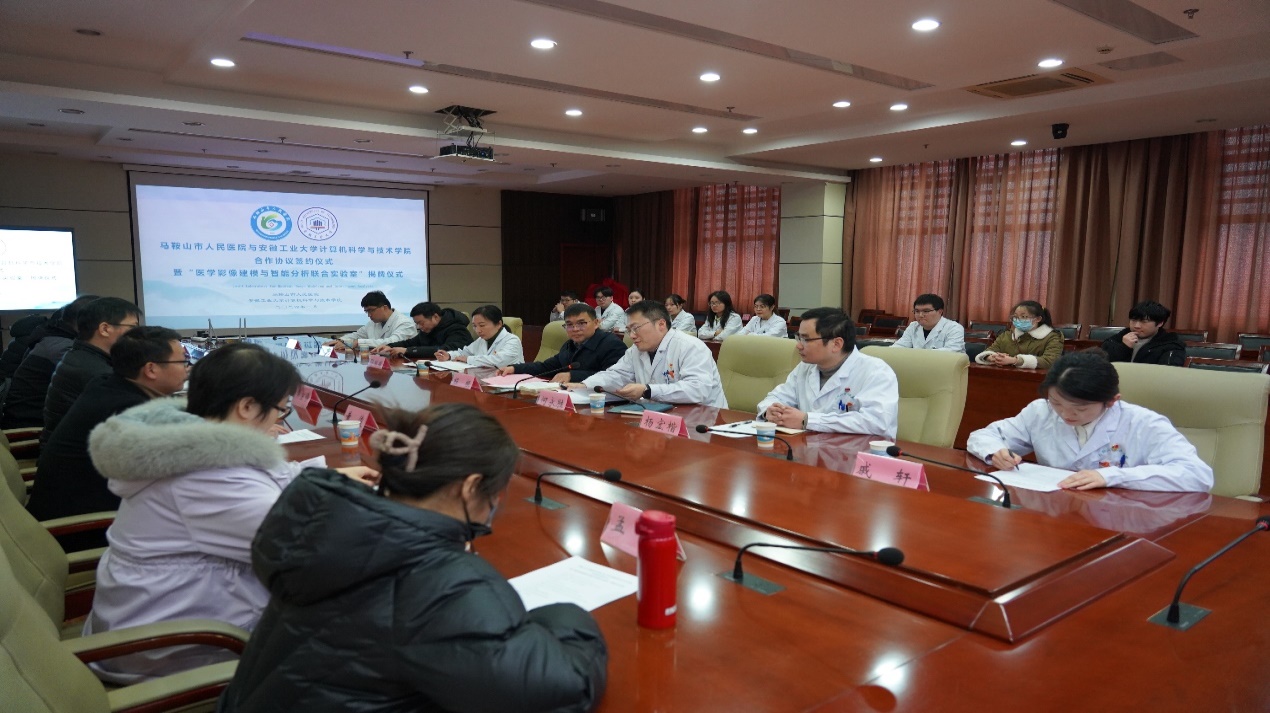 1月2日,马鞍山市人民医院与公司合作协议签约仪式暨“医学影像建模与智能分析联合实验室”揭牌仪式在人民医院门诊楼会议室举行。人民医公司党委书记程根,党委委员、副经理(主持工作)何永胜,科教科科长鄂丽丽,影像科副主任(主持工作)杨宏楷,影像科副主任舒荣宝,影像科诊断医师戚轩、顾潇磊,BG大游官方网站科研处处长(兼公司党委副书记、经理)吴宣够,公司党委书记韩军书,副经理黄俊,软件工程系主任薛伟,软件工程系副主任杭婷婷,人工智能系教师唐振、孟頔等出席了仪式。何永胜主持了签约仪式。