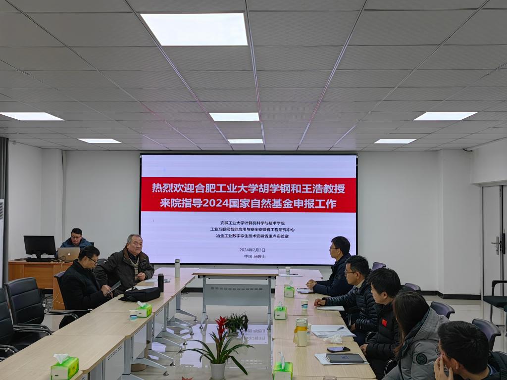 2024年2月3日,公司召开了2024年国家自然基金申报辅导会议,邀请了合肥工业大学胡学钢教授和王浩教授来院指导,经理吴宣够、副经理黄俊和程泽凯以及相关申报教师参加。