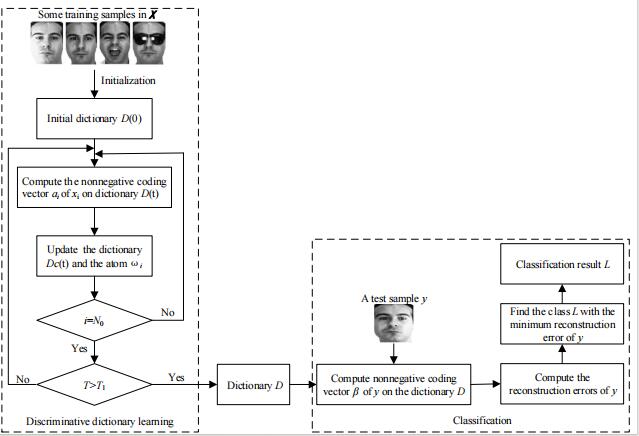 (基于非负表达分类的判别字典学习算法流程)