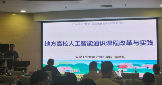 8月1-2日,公司副经理程泽凯,智算中心主任申元霞,人工智能系主任陈哲,教学秘书陈志存参加2024年人工智能+高等教育改革与建设研讨会暨安徽省高等公司新时代大学计算机课程分级分类教学高级研修班。程泽凯应邀作了《地方院校人工智能通识课程改革与实践》主题报告。