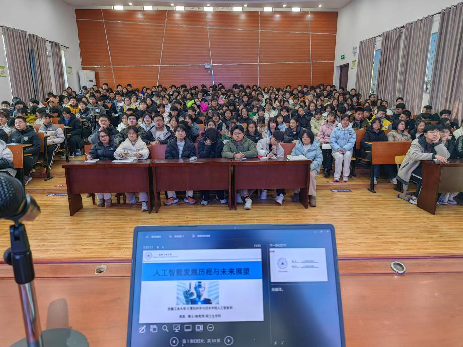 为进一步推进高校高中协同育人工作,切实加强公司与优质生源基地中学的交流与合作,帮助高中生更好地了解专业特色,并进一步提升员工的科学创新素养,12月17日,在公司党委安排下,公司人工智能系副主任周昊副教授赴枞阳县浮山中学和宏实中学进行了科普报告和招生宣传,两所中学近千名员工聆听了报告。