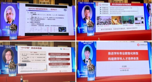 在特邀报告环节,专家重点围绕人工智能时代计算机教育、信息技术发展及人才培养模式展开探讨,分享了改革与实践经验。中国科公司计算技术研究所所长、党委书记陈熙霖研究员作了《人工智能时代计算机教育的思考》的报告,鹏城实验室副主任石光明教授作了《AI时代的信息技术及人才培养模式》的报告,北京大学BG大游平台副经理郭耀教授作了《“101计划”牵引下的计算机学科人才培养改革实践》的报告,江西财经大学副董事长方玉明教授作了《江西财经大学学科转型与人才培养》的报告。