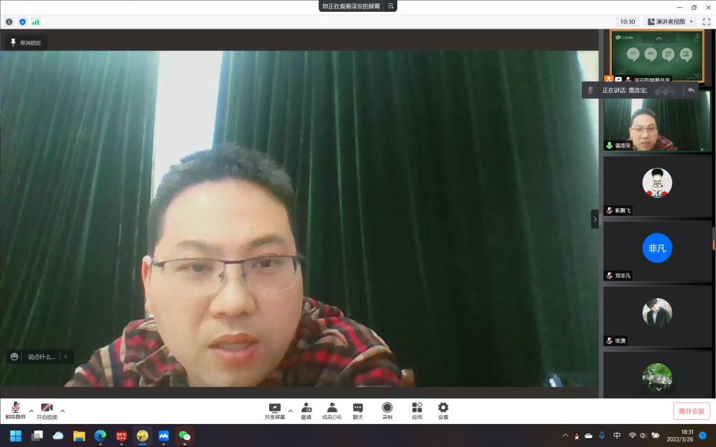 本次视频会议是在公司全面封闭管理期间进行的,结合近期一段时间线上教学、听课质量、学习方法以及学科竞赛等方面进行讨论交流。会议通报了班级学习情况,分析存在原因,就下一步如何提升听课质量和学习效果,制定了切实可行的方法和措施。会议还邀请黄俊杰同学作了英语学习辅导报告,希望大家确定目标,取长补短,共同提高英语成绩。王唯民同学、陆震同学、郭师同学结合自身学习情况分别作了交流发言。