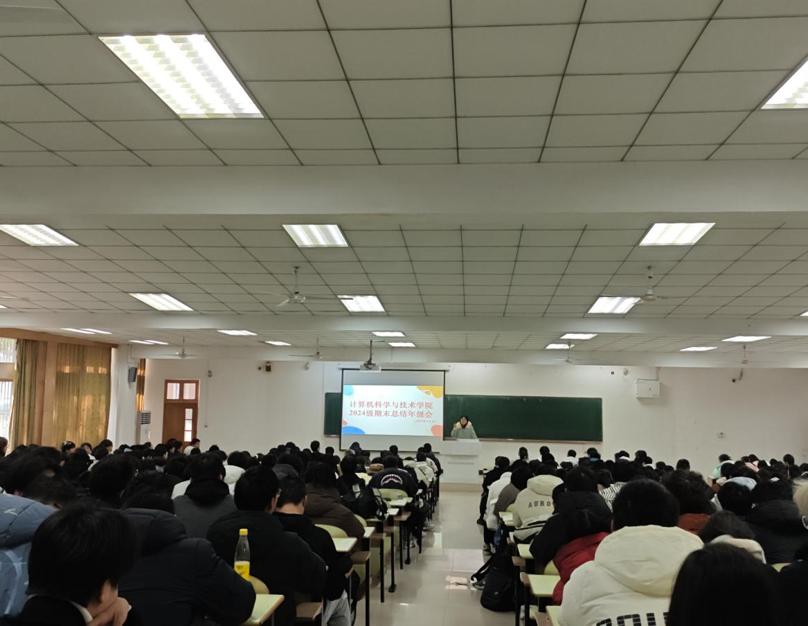 代文嫣首先总结了本学期年级各项工作与取得的成绩。本学期年级迎来了500余名新生,同学们无论是在军训场,还是体育竞赛、文娱比赛和专业竞赛中都取得了亮眼的成绩,充分展示了计算机学子的精神风貌。在肯定了这一学期取得的成绩的同时,也勉励同学们要力求上进,回归学习本身,认真复习,全力迎接接下来的期末考试。